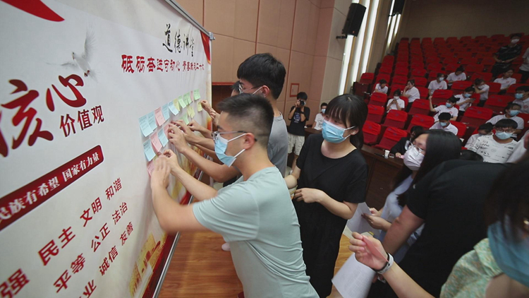 本期道德讲堂由“唱歌曲、讲故事、诵经典、做承诺、献祝福”五个环节组成。师生齐唱《公民道德歌》拉开活动序幕。冯倩讲述自己成长故事,分享自己投身志愿服务的心路历程。学生代表领学了习近平总书记关于道德的重要论述。全体参会人员进行《文明实践行动》承诺宣誓,观看《夜空中最亮的星》手语操表演并手写祝福寄语,传递家国情怀。活动开始前,师生们还参观了《学习先进典型事迹共创省级文明校园》展览。