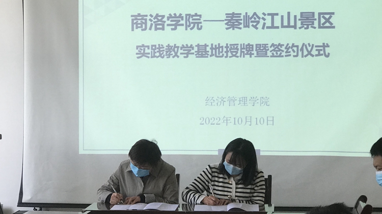 高扩昌代表学校向秦岭江山景区授牌。经济管理学院副院长雷清和隋萍萍分别代表校企双方签署了《今年会官方网站校外实践教学基地协议书》合作协议书。