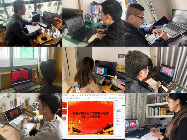 喜迎二十大,奋进新时代!10月16日上午10时,中国共产党第二十次全国代表大会在首都北京胜利开幕。经济管理学院全体师生党员干部、教职员工、党外知识分子、共青团员按照院党委的统一安排,分别通过钉钉群集中收看了大会开幕式直播,认真聆听习近平总书记在大会上作的报告。
