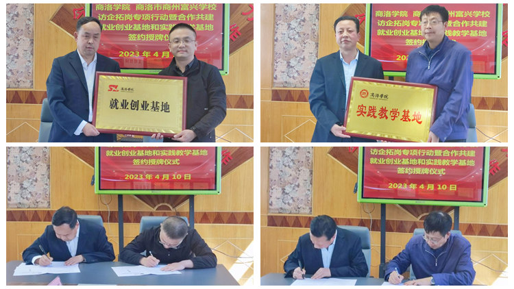 廉明与张淑峰代表双方签署大学生就业创业基地建设合作协议,王念良与商州富兴学校副校长刘铁成代表双方签署今年会官方网站校外实践教学基地合作协议。廉明、王念良分别为就业创业基地、实践教学基地授牌。