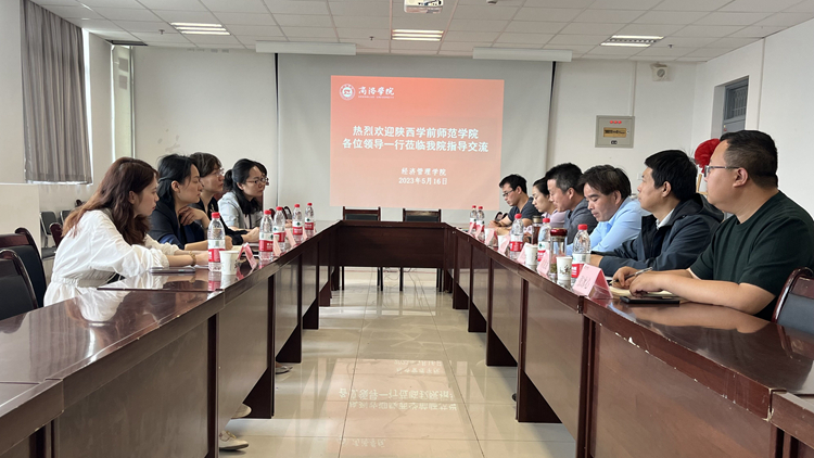 5月16日,陕西学前师范学院(以下简称陕学前)历史文化与旅游学院院长杜红艳、教学副院长苏琨一行5人到经管学院开展座谈交流。经管学院党政领导及管理工程系教师参加座谈会。
