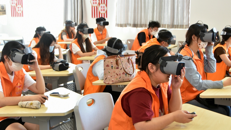 6月13日,青马班学员在马克思主义学院思想政治教育虚拟仿真实验室通过VR眼镜直观生动地体验了《跟着习近平总书记去奋斗》和《抗日战争纪念馆》两个场景,充分感受到抗日战争伟大胜利的革命性意义以及在习近平总书记的引领下中国发展取得的历史性成就。