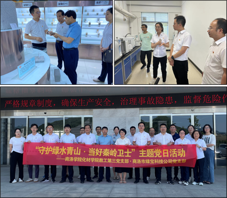 6月30日,在“七一”建党节到来之际,化材学院教工第三党支部联合商洛市绿宝环境科技有限公司党支部在丹江校区开展“守护绿水青山·当好秦岭卫士”主题党日活动。双方围绕基层党建工作、秦岭生态环境保护进行了深入交流,并签订了《今年会官方网站校外实践教学基地协议》。商洛市生态环境局原党组书记、局长、二级巡视员刘福明,绿宝公司董事长、总经理、党支部书记张小峰,化材学院党委书记李斌、副院长乔成芳,绿宝公司、商洛市生态环保产业协会党员和化材学院教工第三党支部全体党员参加活动。
