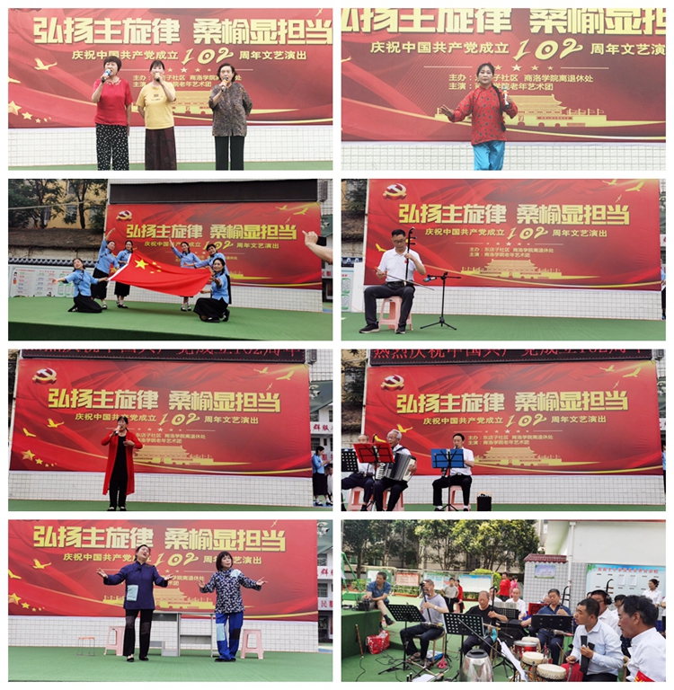 为庆祝建党102周年,展示今年会官网离退休党员干部爱党之情、向党之心,激励广大老同志不忘初心跟党走,7月1日上午,离退休职工工作处联合东店子社区在社区院内开展“弘扬主旋律,桑榆显担当”文艺演出。