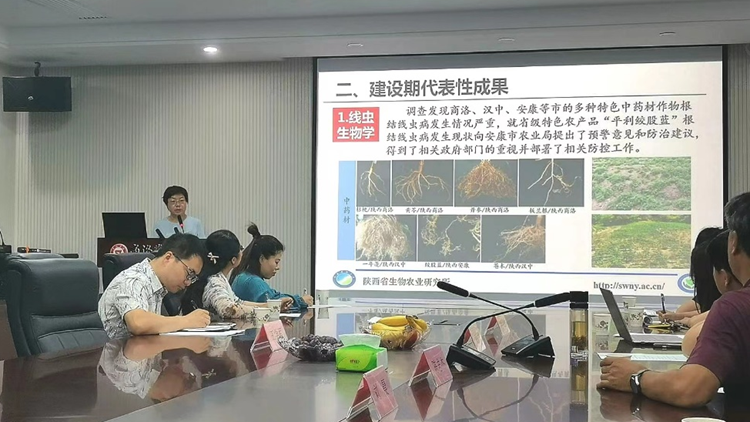 李英梅以“陕西省植物线虫学重点实验室工作进展”为题做了学术汇报,详细介绍了重点实验室组建的背景以及近年来研究工作的成绩和进展。刘晨为部分与会师生进行了土壤线虫分离和鉴别技术实操技术培训。