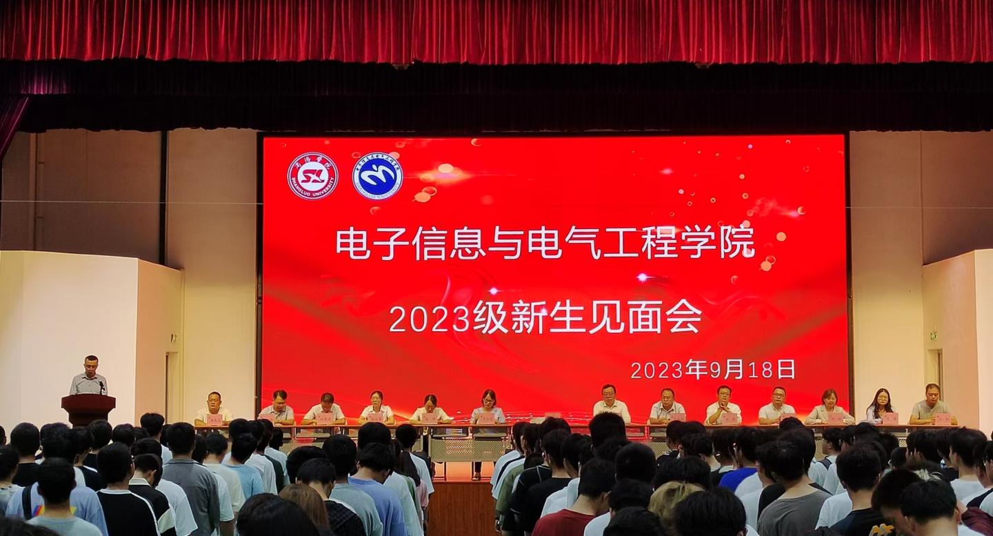 为做好2023级本科新生入学教育,加强师生之间沟通交流,增强新生对学院的了解,9月18日晚,电信学院在丹江校区召开2023级新生见面会。学院党政领导、教师代表、辅导员及2023级360余名新生参加见面会。会议由学院副院长李亚文主持。