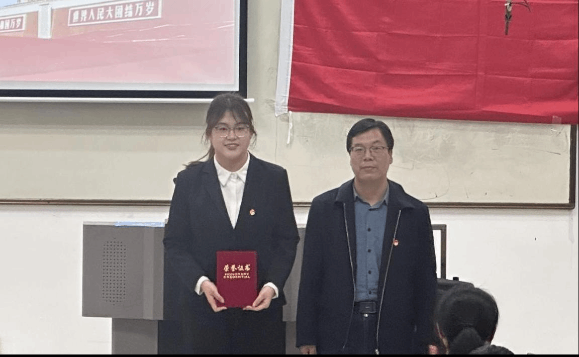 李会荣副书记为一等奖获得者白易媛颁奖并合影留念