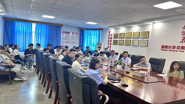 在渭南高新区,长安花粮油公司总经理李辉对师生一行表示欢迎,带领师生参观了粮油生产线,并召开了校企合作座谈会。李辉就企业发展状况、人才需求进行了介绍,杨力就生物学院专业建设情况、师资队伍和毕业生情况进行了介绍。双方表示要进一步深化合作,齐心协力推动校企合作走深走实。