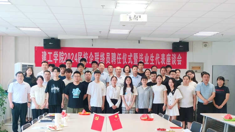 6月26日,建工学院举办2024届校企联络员聘任仪式暨毕业生座谈会。建工学院党委书记杨小锋、院长彭晓邦,学生处副处长张文,学院各系主任、2024届毕业班辅导员、班主任、班干部、毕业生党团学生干部以及优秀毕业生代表等50余人参加了会议。