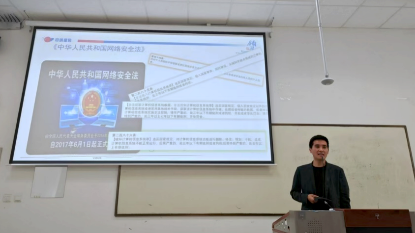 讲座共分为“网络安全热点事件”“信息安全与国家战略”“中华人民共和国网络安全法”“信息安全等级保护测评”“启明星辰核心业务”“网络安全人才现状”六个部分内容。孙明从近期发生的几起重大隐私泄露事件,包括数据泄露、个人信息被非法买卖等热点新闻着手,使在场师生意识到网络安全问题的普遍性、严重性、紧迫性。同时,他对《中华人民共和国网络安全法》进行了深入解读,详细介绍了法律的主要条款、立法目的和实施意义。最后,孙明分析了当前网络安全人才的市场需求、培养现状及发展趋势。他指出,随着网络技术的快速发展,网络安全人才短缺的问题日益凸显。他鼓励在座的学生们积极投身网络安全领域,提升自身技能,为国家的网络安全事业贡献力量。同时,他还分享了启明星辰在人才培养和职业发展方面的举措,为学生们指明了前进方向。