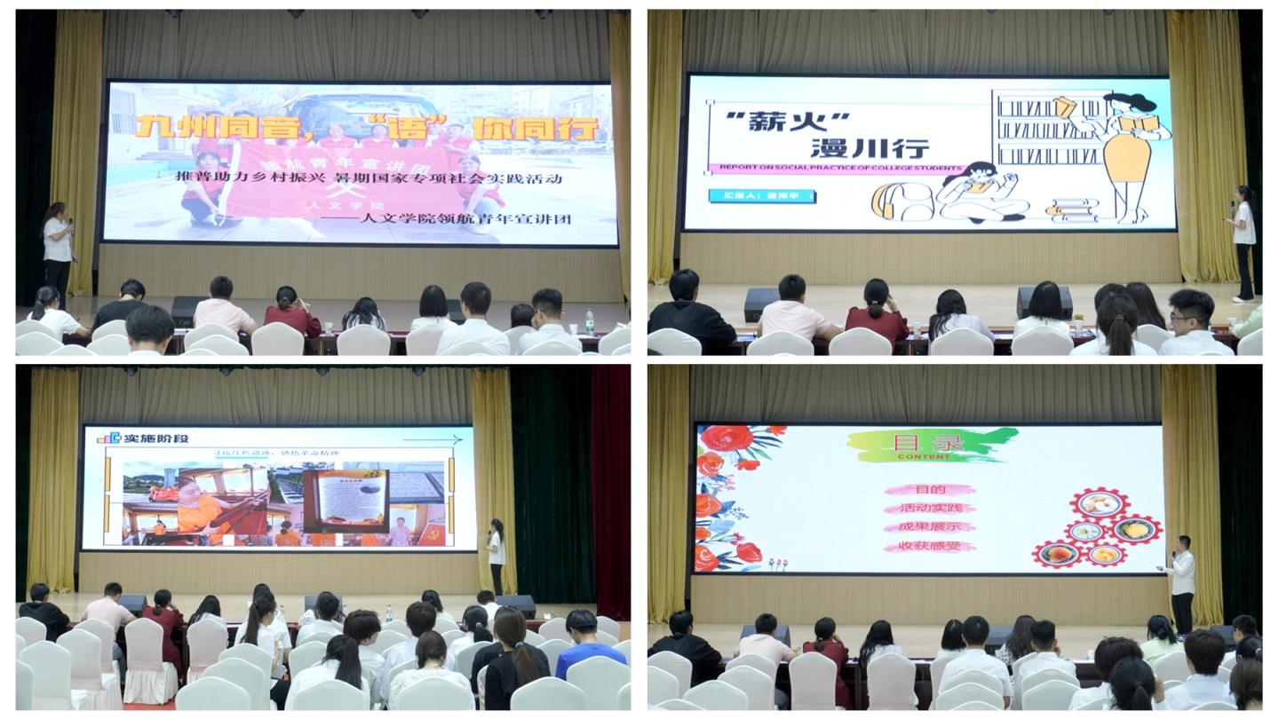 44支校级立项实践团队负责人通过图文、现场讲解、短视频等方式,围绕活动内容、活动方式、实践成果、个人感悟等方面进行了精彩的汇报,充分体现了各团队发挥专业特色,深入乡村、扎根基层,在党史教育、乡村振兴、文化传承、社会服务、禁毒宣传、普通话推广、七彩假期等领域的青春风采和所感所获,在领略祖国发展伟大成就、乡村变革、惠民生暖民心举措的生动对比中不断增强学生的“听党话、跟党走”的坚定信心。