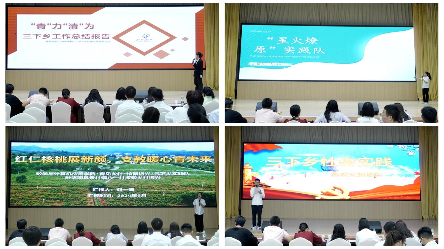 为全面总结2024年暑期“三下乡”社会实践活动,展示今年会官网各团队社会实践成果,9月18日,校团委以“青春为中国式现代化挺膺担当”为主题举办2024年暑期“三下乡”社会实践汇报交流会。团委工作人员、各二级学院团总支书记、实践团队全体成员参加交流会。