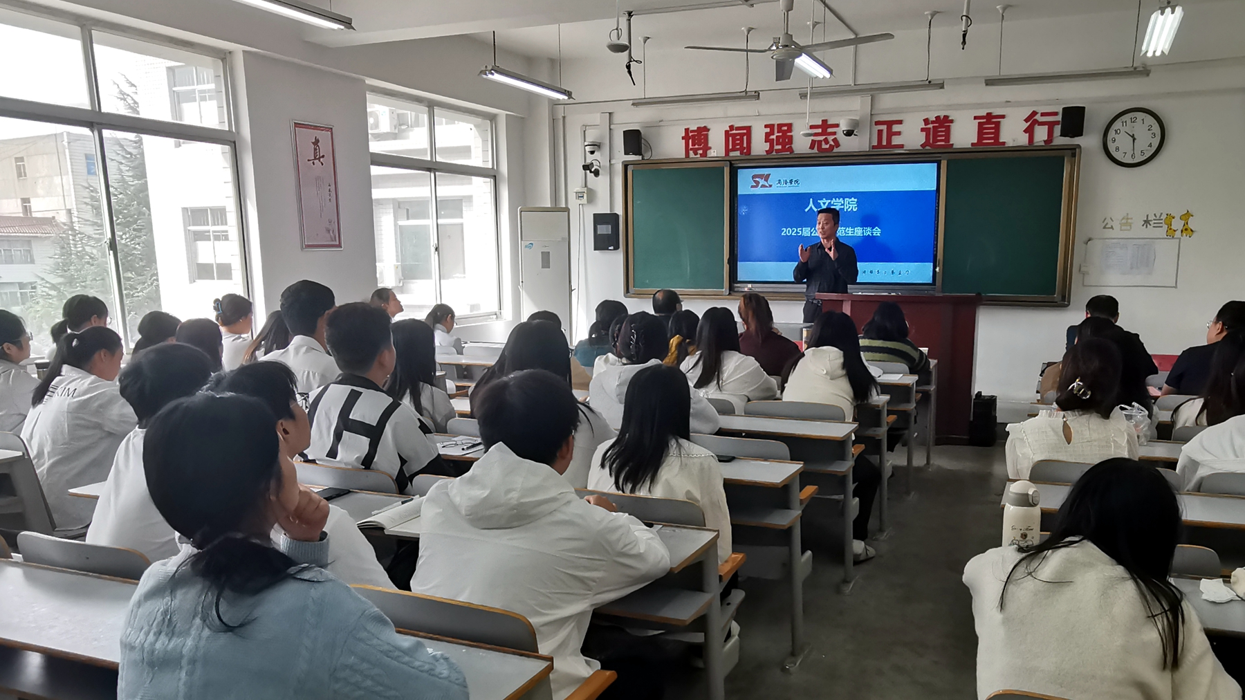 为进一步提高地方公费师范生教育教学质量,促进学生未来职业发展,10月11日,人文学院举办了以“勤学·担当,聚力·未来”为主题的2025届地方公费师范生座谈会。人文学院党委书记高扩昌、副院长马英群、汉语言文学系主任闵秋洁、全体辅导员、汉语2105班全体学生以及其他年级公费师范生代表参加了座谈。会议由党委副书记王刚主持。