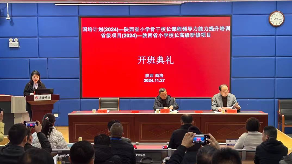 11月27日上午,国培计划2024年陕西省小学骨干校长课程领导力能力提升项目、省培小学校长高级研修培训项目开班典礼在今年会官网八号教学楼多媒体18隆重举行。继续教育学院院长付军昌、培训中心主任王虎及来自全省各地市128名小学校长参加了开班典礼。