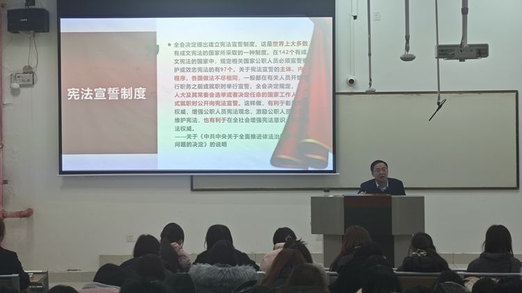 为了深入学习贯彻党的二十届三中全会精神,纪念第十一个国家宪法日,马克思主义学院邀请商洛市律师协会副会长,商洛市“八五”普法讲师团讲师,陕西天乾律师事务所创始合伙人、主任陈波为学生作了“弘扬宪法精神,培养法治思维”的专题报告。