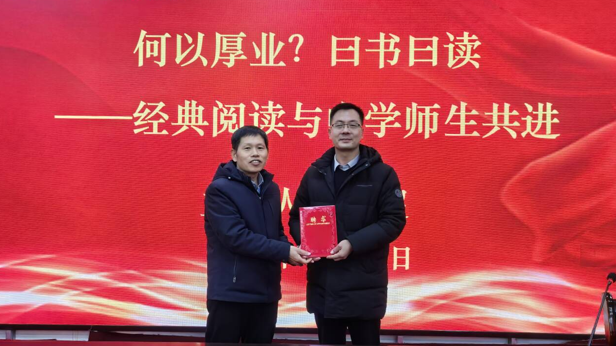 为进一步提升师范生专业素养,打造落地性更强的实践学习平台,12月26日下午,人文学院邀请陕西省优秀教师、中学语文高级教师、长安一中副校长韩超担任主讲嘉宾,为师生作实践教学“经典研读”专题报告。人文学院院长张文诺为韩超老师颁发汉语言文学专业授课专家聘书,副院长张建军、学院教师代表和2023级汉语言文学专业全体学生参加报告会。