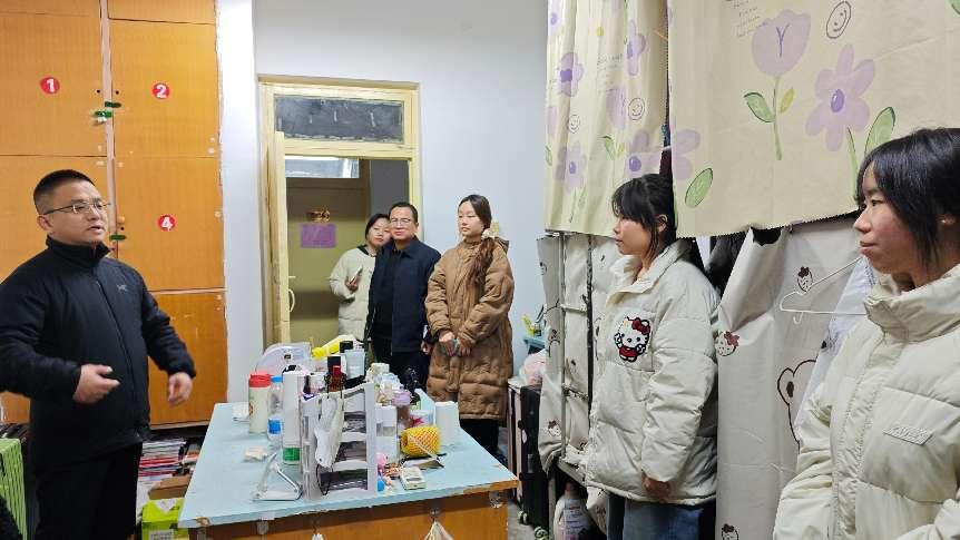 新学期伊始,2月23日晚,艺术学院党委书记廉明及全体辅导员深入学生宿舍调研走访,了解学生的开学准备情况。