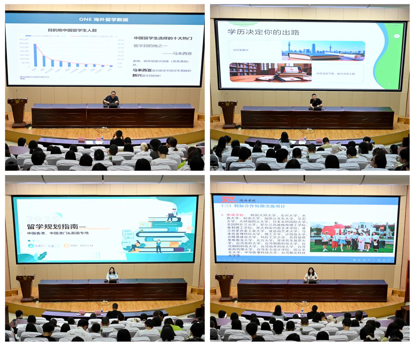 为拓宽学生国际视野、助力高质量人才培养,5月14日,国际合作与交流处联合陕西省学生就业与服务中心在北新街校区和丹江校区分别举办2025年学生出国(境)交流学习项目宣讲会,500余名学生参加活动。