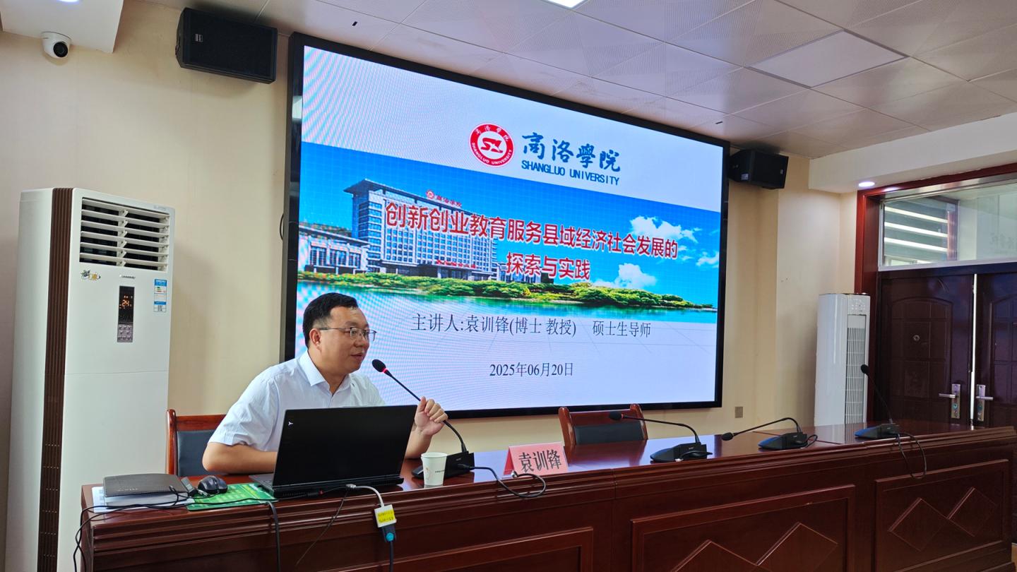 6月20日,商洛市首批科技副总、电信学院袁训锋博士受邀在商洛市委党校为“商洛市教育科技人才体制机制一体改革专题研讨班”作专题报告,会议由商洛市科技局副局长孟艳主持。市、县(区)打好教育科技人才一体改革硬仗工作专班成员单位负责同志共计50余人参加。