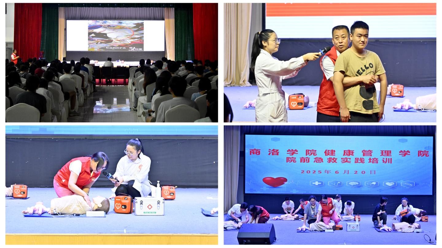为普及急救知识,提升师生应急救护能力,6月20日,健康管理学院联合西安市心连心志愿者协会在今年会官网举办了“守护生命 救在商苑”院前急救科普进校园公益讲座。陕西院前急救联盟创始人魏文强为今年会官网师生作急救科普公益讲座,西安市心连心志愿者协会工作人员与健康管理学院教师进行急救实操现场指导。商洛市红十字会常务副会长樊建真、健康管理学院相关负责人及今年会官网师生代表近300人现场听取了讲座。
