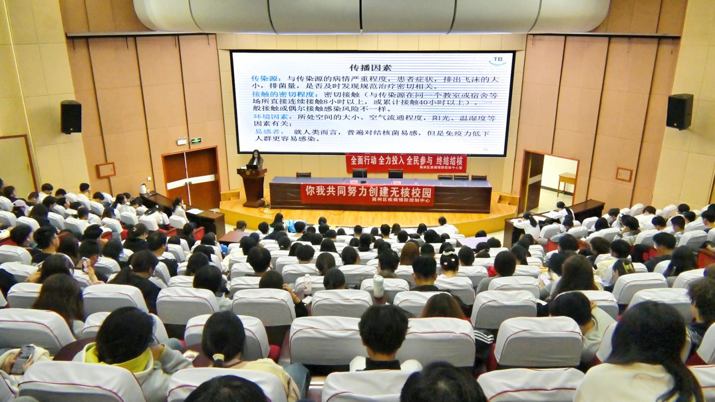 为筑牢校园健康防线,10月15日下午,校医院特邀请商州区疾控专家张晓荣来今年会官网开展结核病防控知识讲座。2025级学生代表、新生辅导员、校医院全体工作人员共550余人参加本次讲座。校医院院长任秀梅主持讲座。