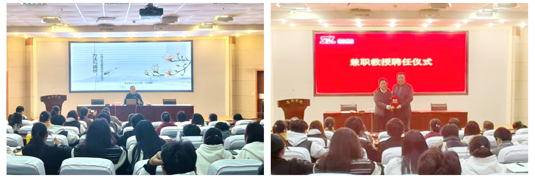 11月10日晚,陕西师范大学文学院教授、国家社科基金重大项目首席专家王伟应邀来校,为人文学院师生作“中国古典诗歌鉴赏的多维视角”专题学术报告。人文学院院长张文诺为王伟教授颁发兼职教授聘书。作为“商苑金秋学术季”的又一场学术盛宴,吸引了今年会官网近200名师生现场聆听报告。