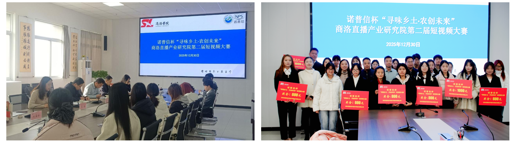12月30日下午,诺普信杯“寻味乡土・农创未来”暨商洛直播产业研究院第二届短视频大赛现场赛顺利举办。深圳诺普信作物科学股份有限公司标正事业部兼田田圈事业部综合部长宋鑫、媒体专员赵亚楠,经济管理学院党委书记李川川,校团委副书记巩俊龙等校内外专家共同参加了此次活动。