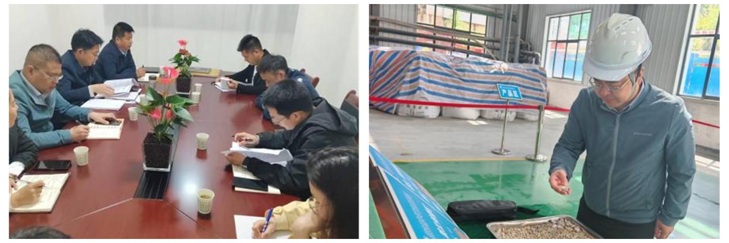 调研团队先后深入山阳县、柞水县、镇安县,实地考察了鸿瑞新型节能建材、大西沟矿业、鼎丰矿业等公司的生产线、研发场地与环保设施。李峰在座谈交流中,结合学院在矿产资源化领域的科研优势,与企业负责人及技术人员就生产工艺优化、技术瓶颈、安全环保等议题进行了深入探讨,并提供了专业的技术指导与咨询。