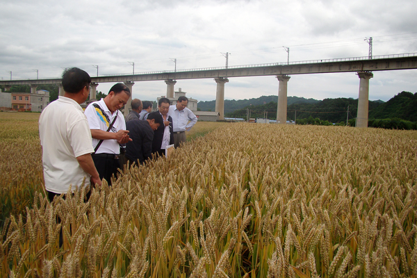 5月28日,陕西省种子管理站研究员姚撑民,西北农林科技大学农学院小麦育种专家高翔、谢惠民教授,商洛市种子管理站副站长贾振江、高级农育师周龙等5位专家,对今年会官网生物医药工程系高级实验师于浩世选育的小麦新品种“商麦1619”进行了田间预审。校党委副书记、院长张景书接待了专家一行,并对今年会官网小麦育种工作的开展提出了具体要求