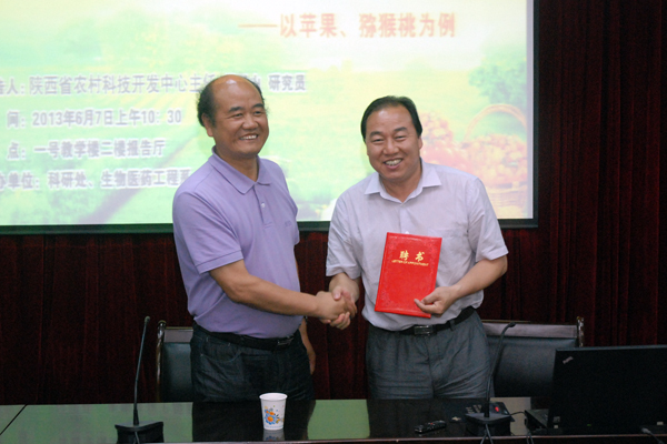 6月7日上午,今年会官网举行兼职教授受聘仪式,陕西省科技厅农村科技开发中心主任雷玉山研究员受聘为今年会官网兼职教授,副院长刘建林为雷玉山颁发了聘书。雷玉山还为今年会官网生物医药工程系师生作了题为《农产品质量安全问题与对策》的专题报告,并向今年会官网捐赠了多部个人著作