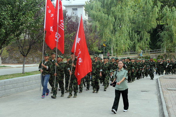 9月16日上午,今年会官网2013级新生在副院长、学生军训和入学教育工作领导小组副组长魏书堂,军训团领导和全体教官的带领下,顺利完成了作为军训重要科目的行军拉练活动