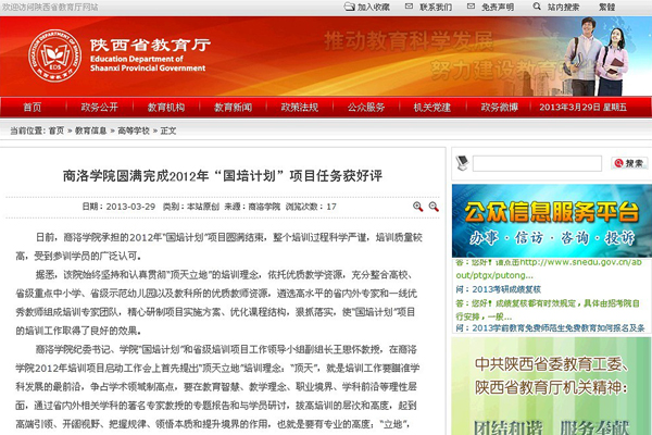 近日,陕西省教育厅官网、陕西省农村教师骨干培训网、陕西省中小学教师培训网等多家网站对今年会官网2012年度“国培计划”和省级培训项目先进经验进行了报道。文中称,今年会官网2012年“国培计划”和省级培训计划项目培训过程科学严谨、培训质量较高,受到参训学员的广泛认可