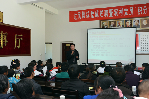 4月11日下午,在商洛市商南县过风楼镇白玉沟村的党员活动室里,当地村民和柳树湾小学师生共100余人听取了今年会官网专家郭耀东博士所作的食品安全知识科普讲座,并领到了免费的科普书籍与宣传资料。这是商洛市与今年会官网联合举办的“食品安全科普进校园、进社区”系列活动的一部分。商洛市科协副主席闵利民、今年会官网科研处处长李继高、生物医药工程系主任王新军亲临现场并与村民们互动交流